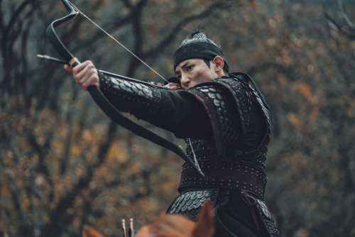 포인트: 사극 호흡. 말끝을 깔끔히 끊어 권위를 만들고, 갑옷·로브 핏이 어깨선과 만나 화면 비중이 커져요.