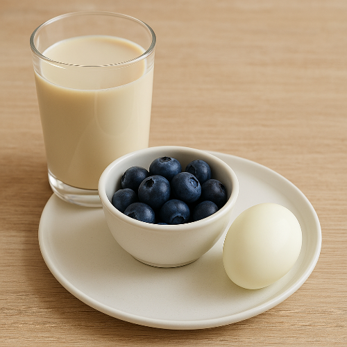- 아침: 두유 1잔 + 블루베리 + 삶은 달걀
