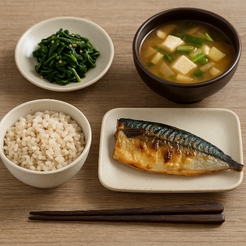 - 저녁: 고등어구이 + 시금치나물 + 된장국 + 귀리밥