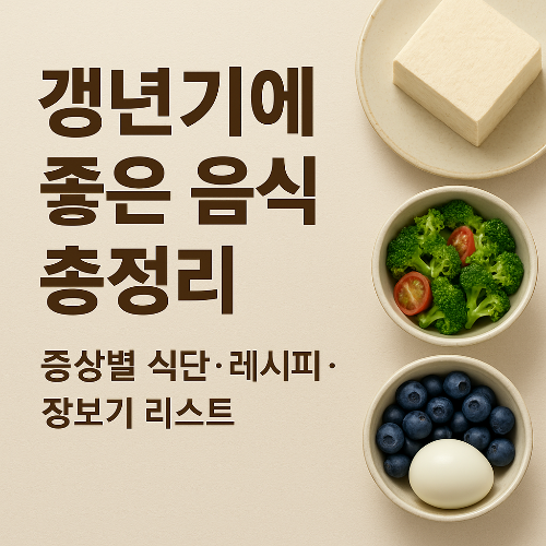 갱년기에 좋은 음식을 과학적 근거로 정리했습니다. 단백질·칼슘·비타민D·오메가3·식이섬유 중심 7일 식단, 간단 레시피, 장보기 리스트까지 한 번에 확인하세요.