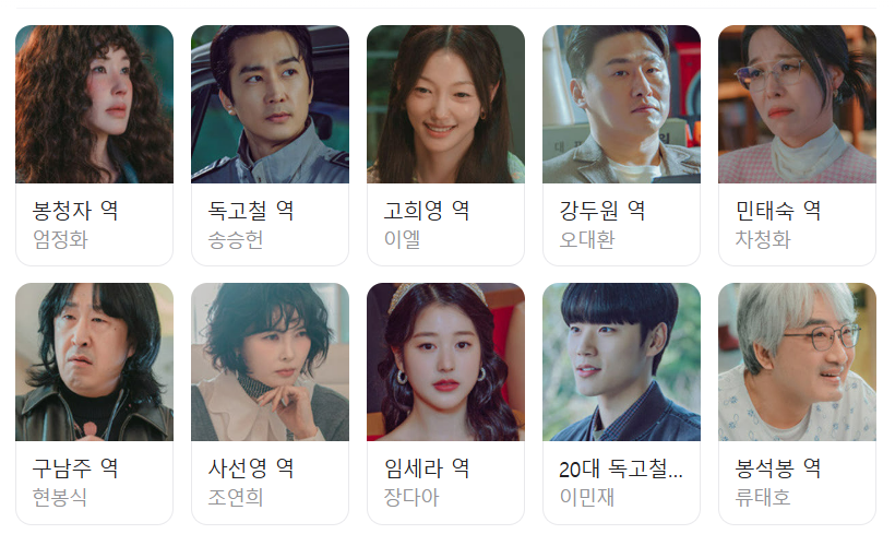 - 차청화 (민태숙 역), 현봉식 (구남주 역), 조연희 (사선영 역) 등 개성 강한 조연들이 극을 더욱 풍성하게 만듭니다.