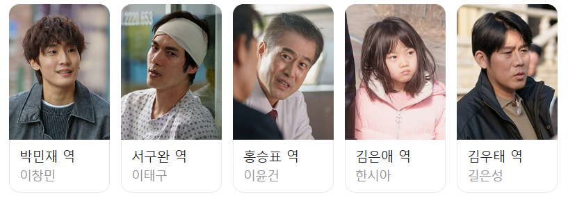 - 조연 축: 수사팀원(김민호·김태정·박완형), 주변 가족·친구(이창민·차순배·한동희), 용의자(서구완), 권력층(이윤건) 등이 얽히며 사건의 퍼즐을 완성한다