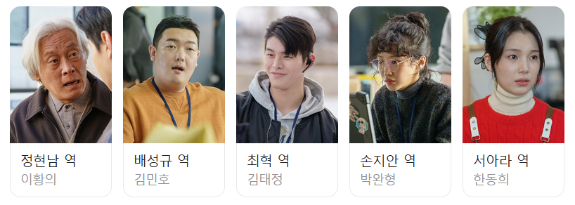 | 한동희 | 서아라 | 정연의 친구이자 공방 동료. 솔직하고 쾌활한 성격으로 정연을 도와 수열의 비밀을 파헤친다. |